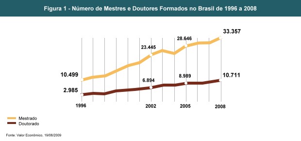 Em primeiro lugar é preciso atestar que nos últimos dez anos o Brasil avançou sensivelmente em termos de sua capacitação científica. O número de mestres e doutores formados no país praticamente triplicou na última década, como pode ser |
