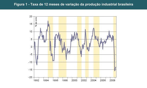 Uma reflexão que se pode fazer sobre a presente crise em nosso país é a seguinte: como o Brasil foi mais afetado do que em qualquer outro episódio de contágio, ao se observar os dados da produção industrial (ver gráfico à frente, retirado do artigo “A Crise Internacional e o Brasil”, de autoria dos Profs. Antonio Celso Pastore e Maria Cristina Pinotti, apresentados em maio do corrente ano no XXI Fórum Nacional), como esta queda está afetando os investimentos em inovação? E qual o impacto deste declínio nas perspectivas de crescimento de longo-prazo do país?