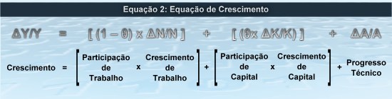 Onde (1 – θ) e θ são pesos equivalentes à participação do trabalho na renda e a participação do capital na renda. A equação (2) sumariza as contribuições do crescimento dos insumos e da melhoria de produtividade para o crescimento dos insumos e da melhoria de produtividade para o crescimento da produção: